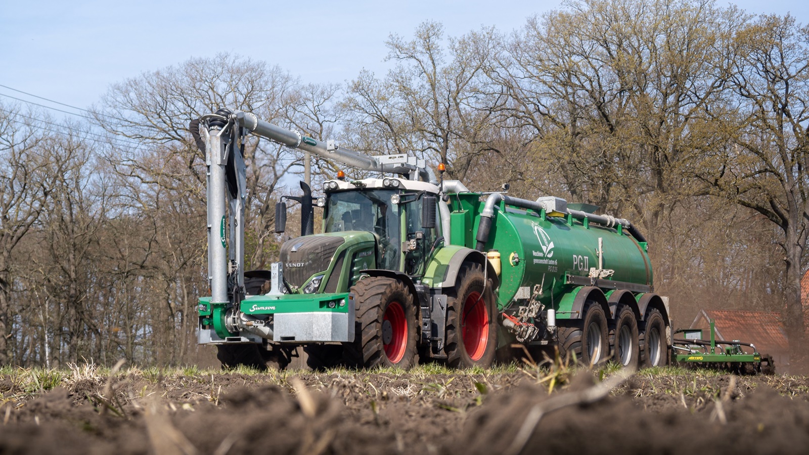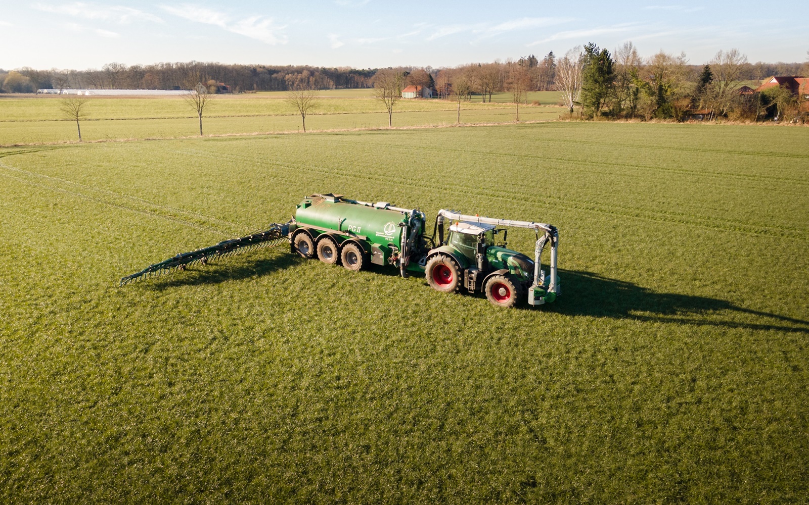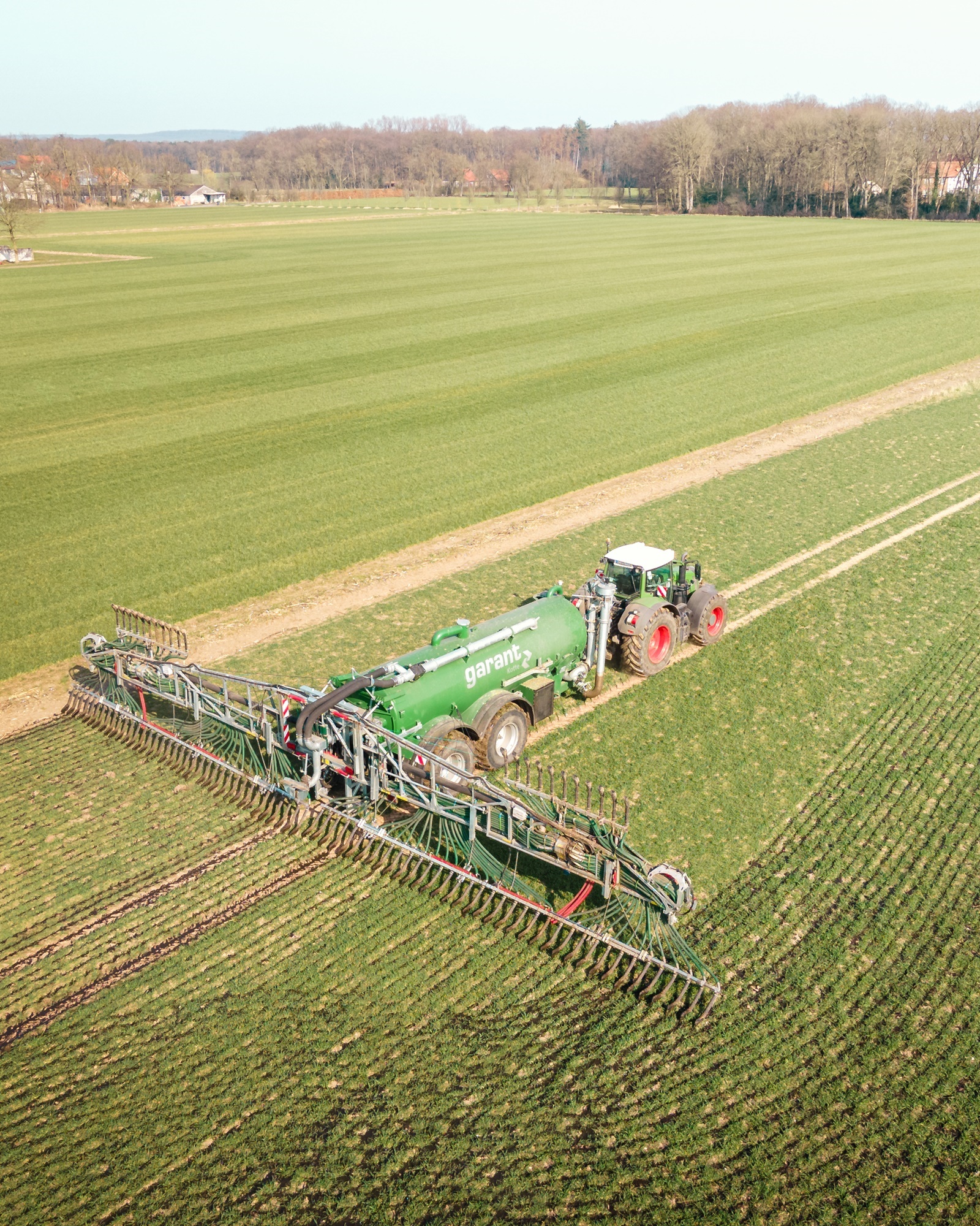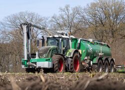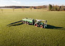 4 Gülle Ausbringfässer mit Volumen zwischen 17,5m³-25,5m³ und Schleppschuhverteiler oder Scheibenegge zur direkten Einarbeitung.